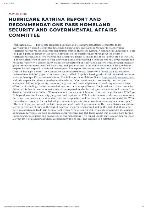 dropbox/COLLECTION- Research/Katrina Batch 2/katrina homeland security response/HURRICANE KATRINA REPORT AND RECOMMENDAT... _ U.S.pdf