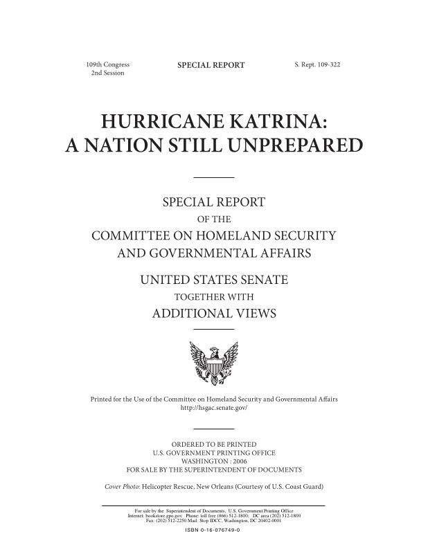 dropbox/COLLECTION- Research/Katrina Batch 2/katrina homeland security response/S. Rept. 109-322 -- Hurricane Katrina_ A Nation Still Unprepared.pdf