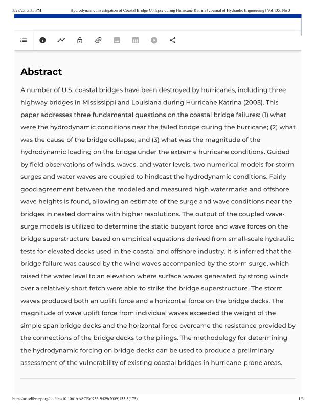 dropbox/COLLECTION- Research/Katrina Batch 2/katrina investigations/Hydrodynamic Investigation of Coastal Bridge Collapse during Hurricane Katrina _ Journal of Hydraulic Engineering _ Vol 135, No 3.pdf