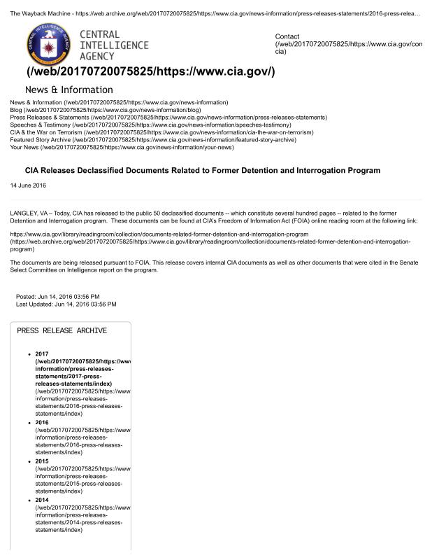 dropbox/COLLECTION- Government/CIA/Declassified President Daily Briefs and Press Releases/2016/CIA Releases Declassified Documents Related to Former Detention and Interrogation Program — Central Intelligence Agency.pdf