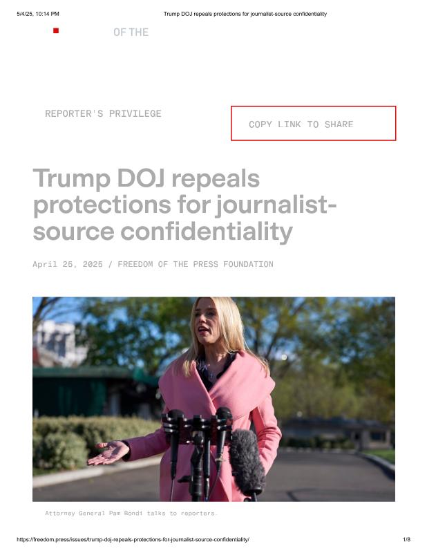 dropbox/COLLECTION- Government/Big Brother/Intrusive Surveilance/Trump DOJ repeals protections for journalist-source confidentiality.pdf