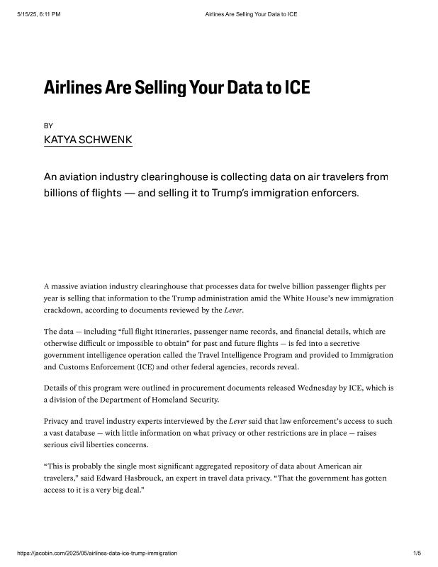 dropbox/COLLECTION- Government/Big Brother/Travel and Borders/Air Travel/Airlines Are Selling Your Data to ICE.pdf