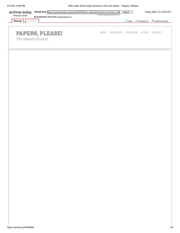 dropbox/COLLECTION- Government/Big Brother/Travel and Borders/Air Travel/ARC sells airline ticket records to ICE and others – Papers, Please!.pdf