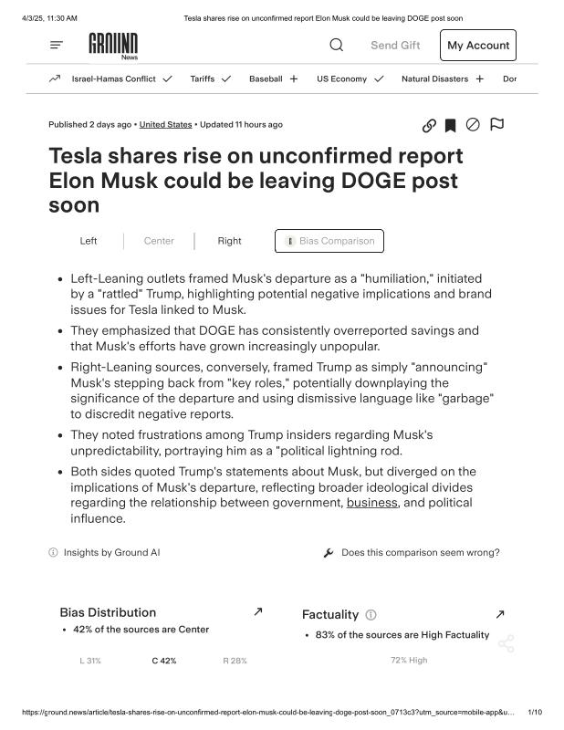 dropbox/COLLECTION- Government/DOGE/Musk Leaves/Tesla shares rise on unconfirmed report Elon Musk could be leaving DOGE post soon.pdf