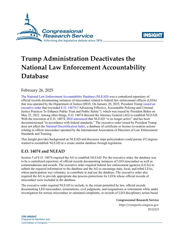 dropbox/COLLECTION- Government/dept of justice/Accountability/Trump Admin. Deactivates National Law Enforcement Accountability Database.pdf
