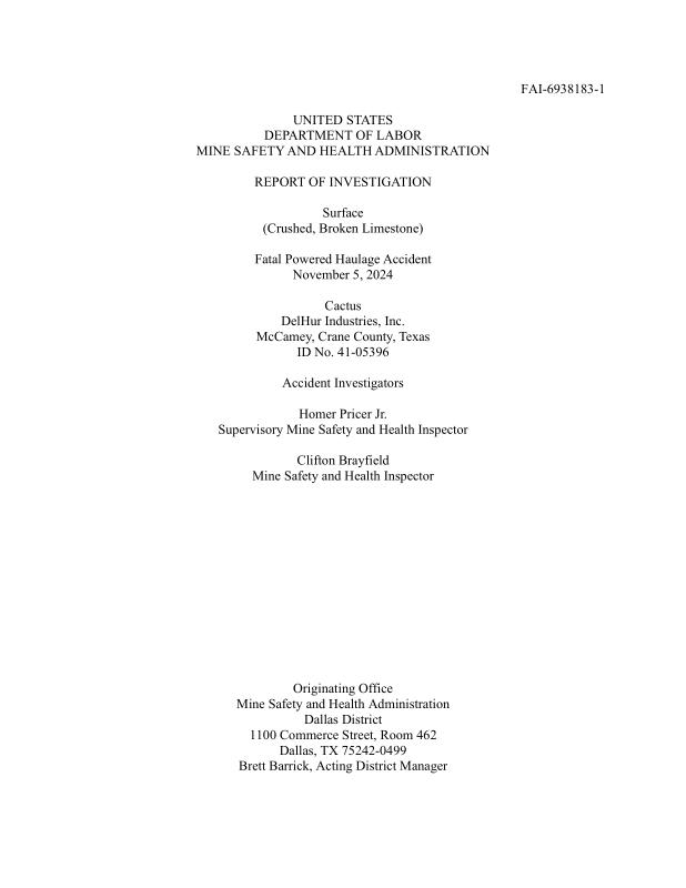 dropbox/COLLECTION- Government/Dept of Labor/Hazardous Conditions/Investigation Report_Haulage Accident 11_05_2024.pdf