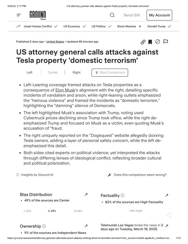 dropbox/COLLECTION- Government/Conflict of Interest-Corruption/Tesla/US attorney general calls attacks against Tesla property 'domestic terrorism'.pdf