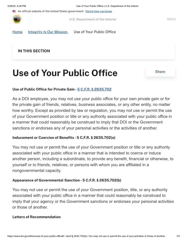 dropbox/COLLECTION- Government/Conflict of Interest-Corruption/Trump Breaking Federal Law/Use of Your Public Office _ U.S. Department of the Interior.pdf