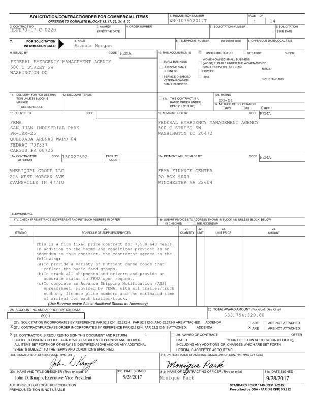 dropbox/COLLECTION- Research/Katrina Batch 1/NARA catalog katrina/fema/FEMA Frequently Requested Records/AmeriQual Group LLC - HSFE70-17-C-0220.pdf