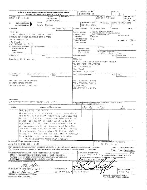 dropbox/COLLECTION- Research/Katrina Batch 1/NARA catalog katrina/fema/FEMA Frequently Requested Records/Sealift Inc of Delaware, HSFE70-17-P-0100.pdf