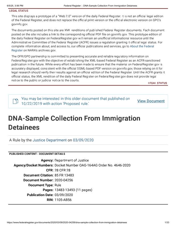 dropbox/COLLECTION- Government/FBI/Federal Register __ DNA-Sample Collection From Immigration Detainees.pdf