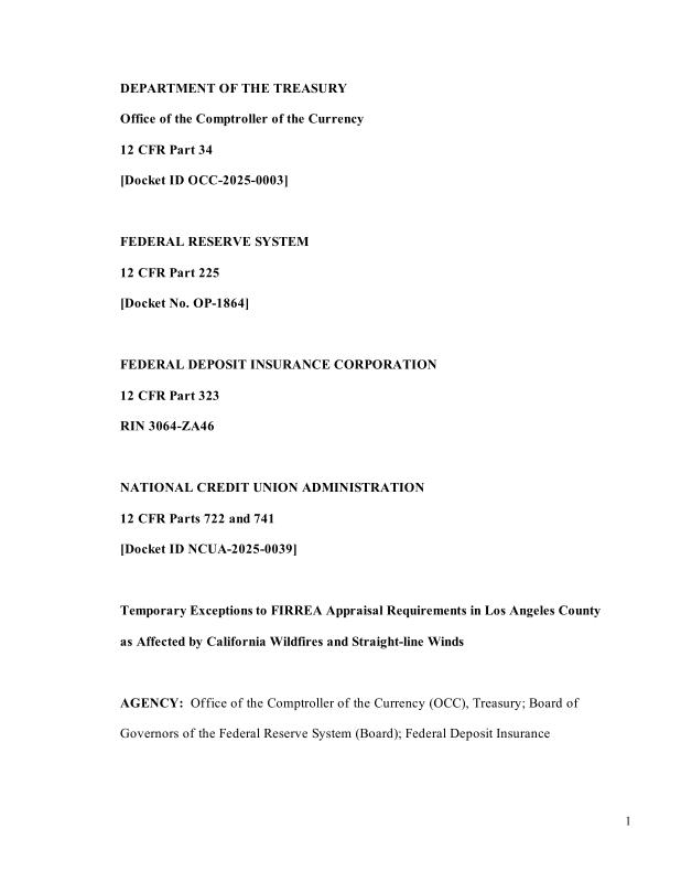 dropbox/COLLECTION- Government/Federal Reserve/Federal Register notice_ Temporary Exceptions to FIRREA Appraisal Requirements in Los Angeles County as Affected by California Wildfires and Straight-line Winds.pdf