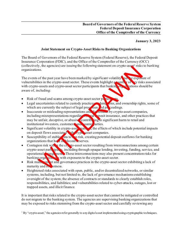 dropbox/COLLECTION- Government/Federal Reserve/Joint Statement on Crypto-Asset Risks to Banking Organizations.pdf