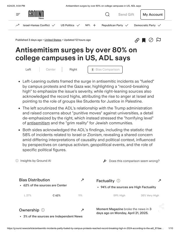 dropbox/COLLECTION- Government/US Relation with Israel/Antisemitism surges by over 80% on college campuses in US, ADL says.pdf