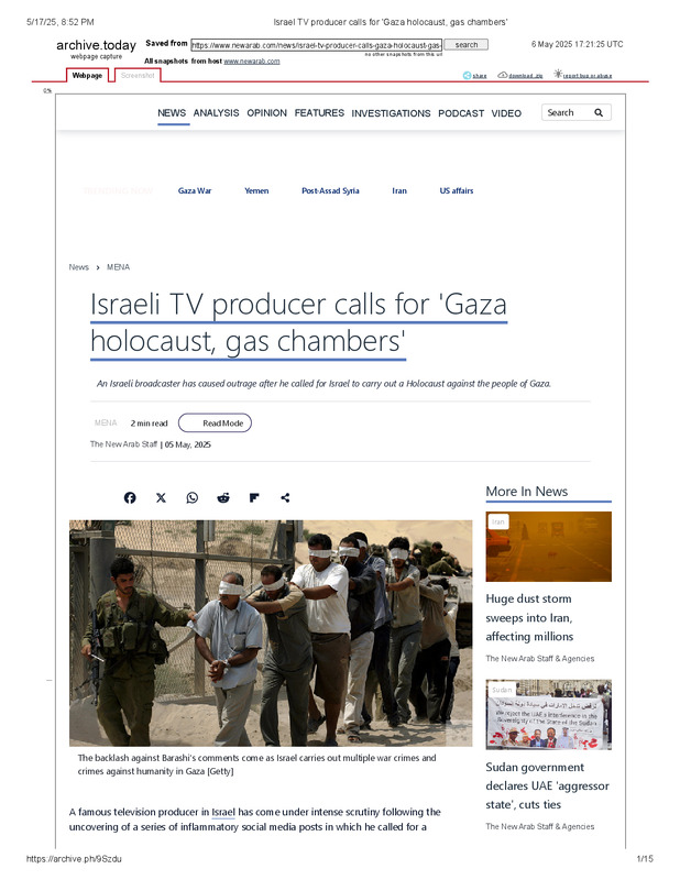 dropbox/COLLECTION- History/Nazi Germany/Extremists/Israel TV producer calls for 'Gaza holocaust, gas chambers'.pdf