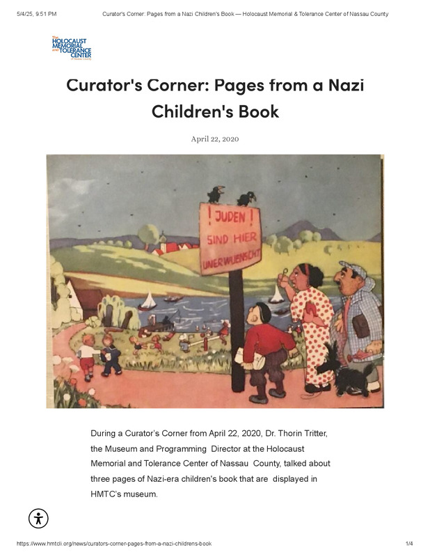 dropbox/COLLECTION- History/Nazi Germany/Related Moments to Now/Israeli Propaganda Book for Children/Propaganda Books in Nazi Germany/Curator's Corner_ Pages from a Nazi Children's Book — Holocaust Memorial & Tolerance Center of Nassau County.pdf