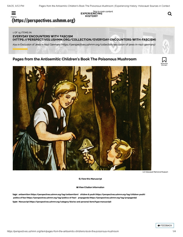 dropbox/COLLECTION- History/Nazi Germany/Related Moments to Now/Israeli Propaganda Book for Children/Propaganda Books in Nazi Germany/Pages from the Antisemitic Children's Book The Poisonous Mushroom _ Experiencing History_ Holocaust Sources in Context.pdf
