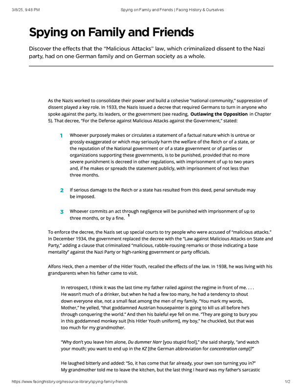 dropbox/COLLECTION- History/Nazi Germany/Related Moments to Now/Informing the Party of Opposition/Spying on Family and Friends _ Facing History & Ourselves.pdf