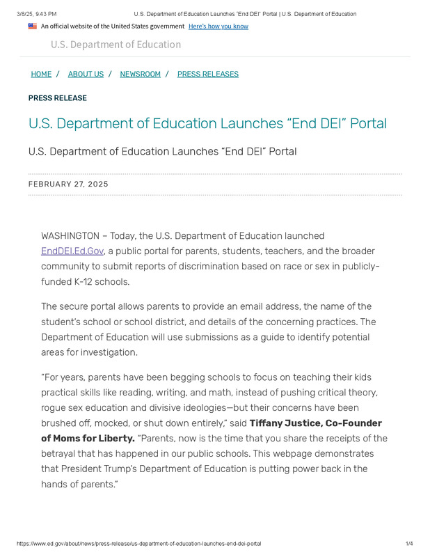 dropbox/COLLECTION- History/Nazi Germany/Related Moments to Now/Informing the Party of Opposition/U.S. Department of Education Launches “End DEI” Portal _ U.S. Department of Education.pdf