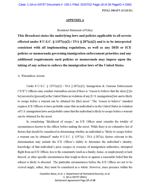 dropbox/COLLECTION- Legal/ICE/Castañon Nava et al. v. DHS, et al/Nava_Settlement_ICE_Warrantless_Arrest-Vehicle_Stop_Policy_2021.pdf