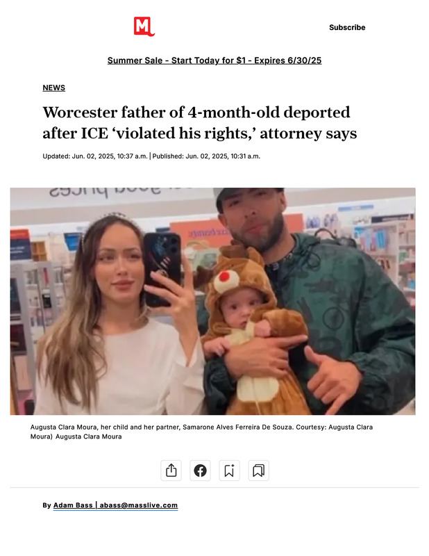 dropbox/COLLECTION- Legal/ICE/Cruelty/Unlawful Practices/No Due Process/Worcester father of 4-month-old deported after ICE ‘violated his rights,’ attorney says - masslive.com.pdf